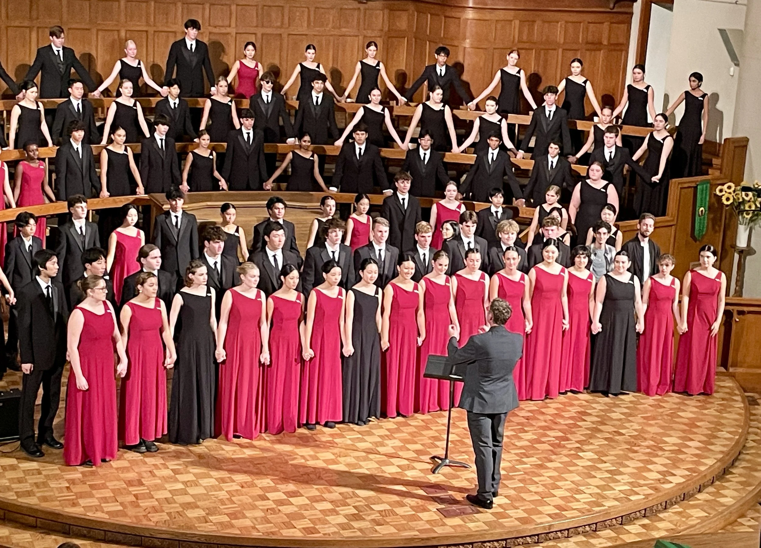 Concert Choir and Chamber Singers have custom earrings as part of their wardrobe. Women’s Ensemble has custom necklace and earrings. Honor’s Choir has a custom necklace. Jewelry costs are included in the wardrobe contribution. Details will be available at the beginning of each school year. Ladies in other choirs may wear simple stud earrings if they are not provided. No other necklaces are to be worn.